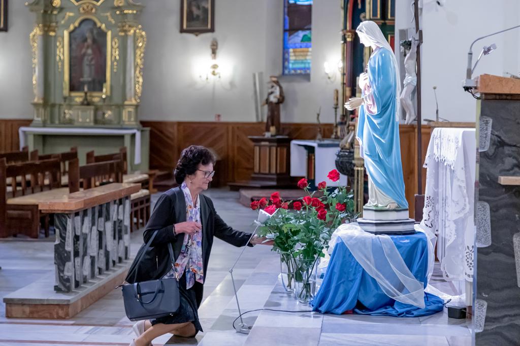 Środa 10 września br. minęła pod znakiem Maryi, a to wszystko za sprawą obecności pośród nas figury Niepokalanej. Wszystkie Msze św. tego dnia zostały odprawione wg formularza o Matce Bożej i to Jej poświęcony był wieczorny różaniec - prowadzony, jak co środę, przez Róże Różańcowe naszej parafii. Pięćdziesiąt czerwonych róż przed Jej figurą to okazanie naszej miłości i wdzięczności, bo tylko do Niej możemy uciekać się w każdej naszej potrzebie i nigdy nie doznamy zawodu.