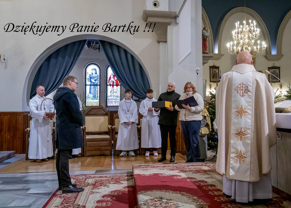 Na zakończenie Mszy św. ks. Proboszcz oraz przedstawiciele grup formacyjnych naszej parafii podziękowali Panu Kościelnemu za dziesięć lat pięknej i owocnej pracy w naszej wspólnocie oraz życzyli błogosławieństwa Bożego w zadaniach i wyzwaniach, jakie będą przed nim stać w przyszłości.