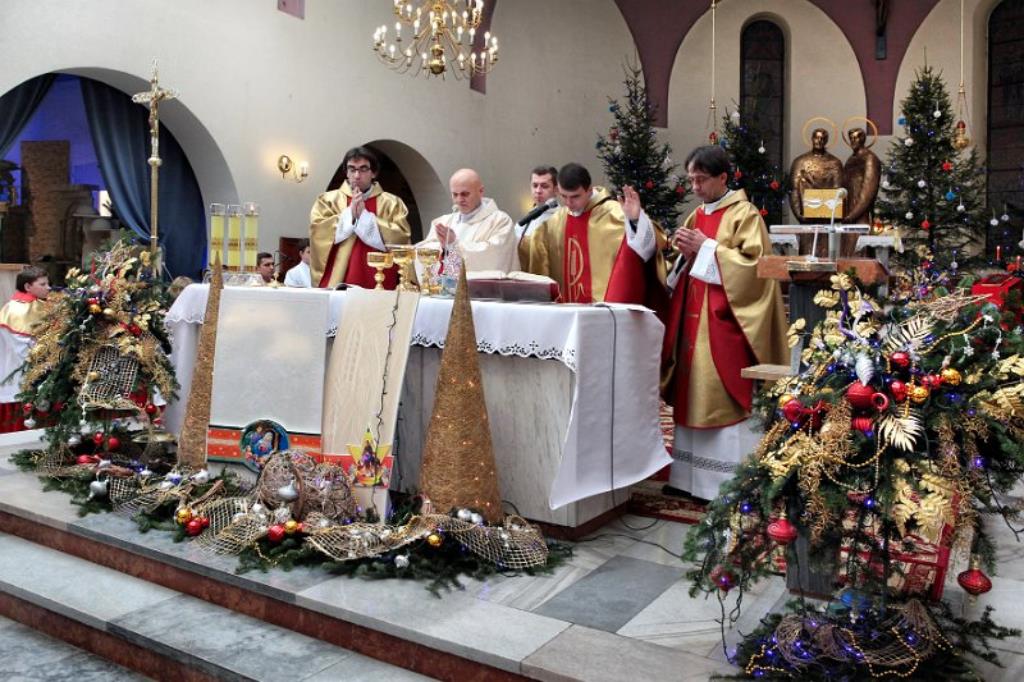 Mszą świętą o północy (czyli Pasterką) rozpoczęliśmy świętowanie pamiątki narodzin Jezusa Chrystusa. Przy dźwiękach kolęd w wykonaniu Młodzieżowego Zespołu Muzycznego złożyliśmy sobie świąteczne życzenia wszelkiej pomyślności i Bożego błogosławieństwa.