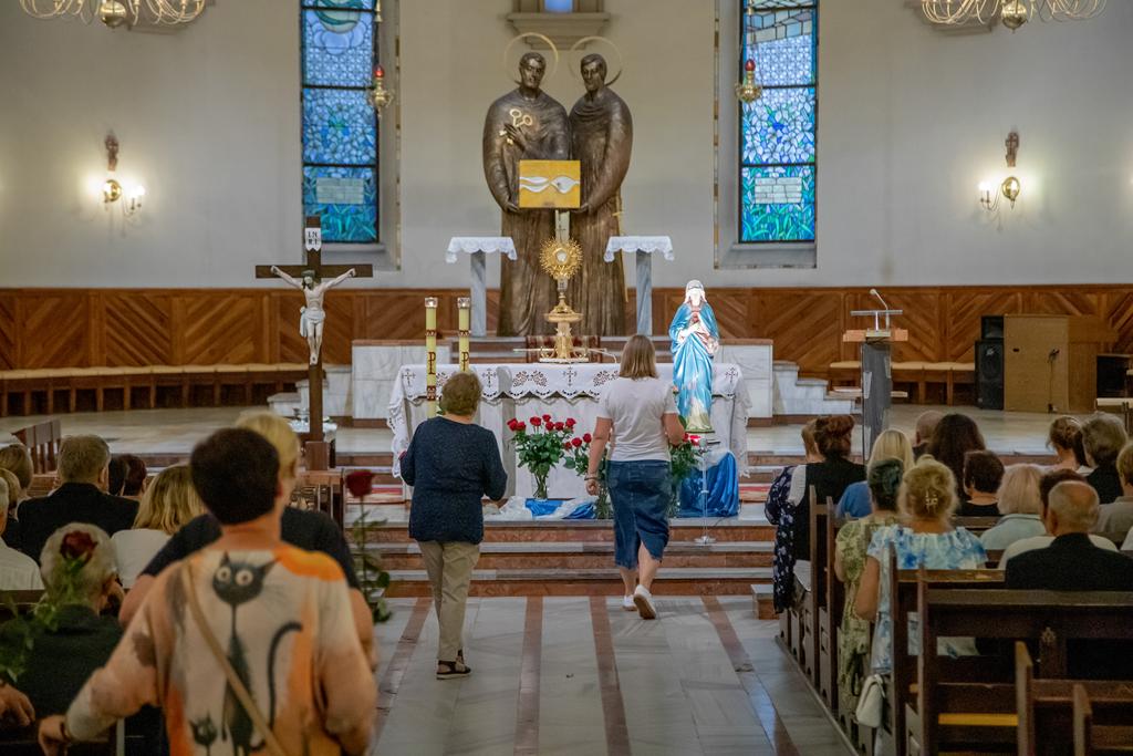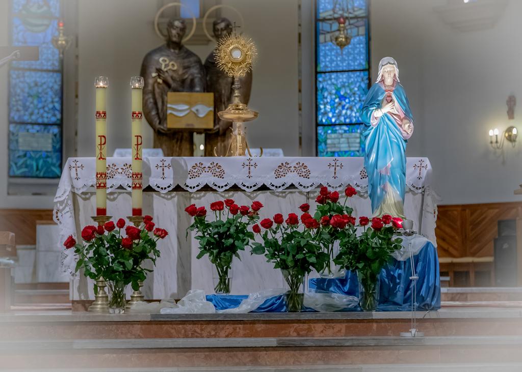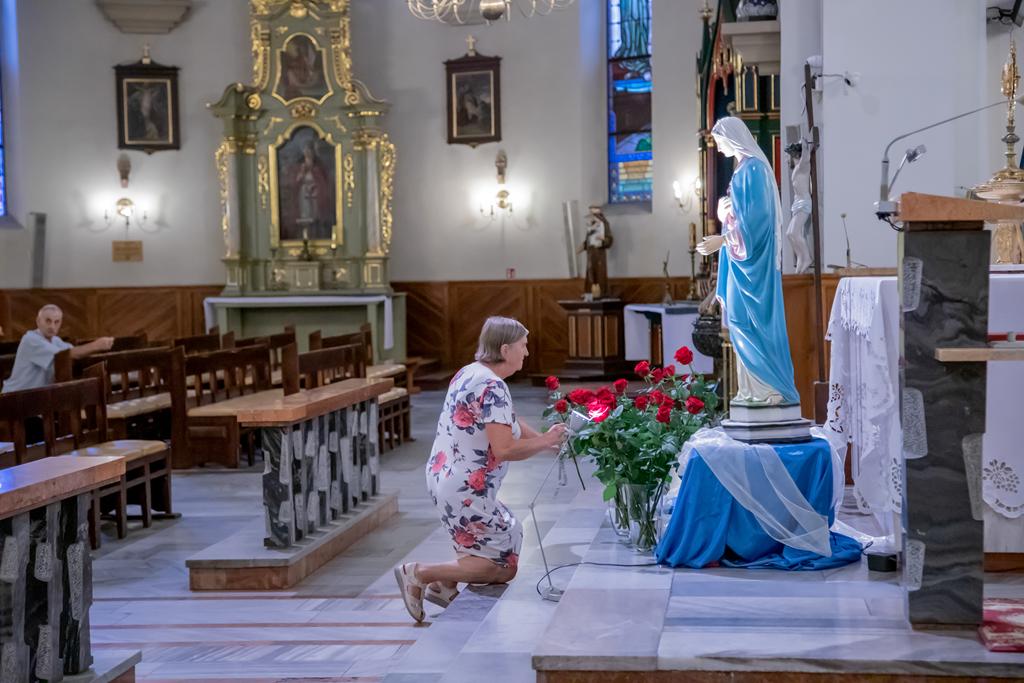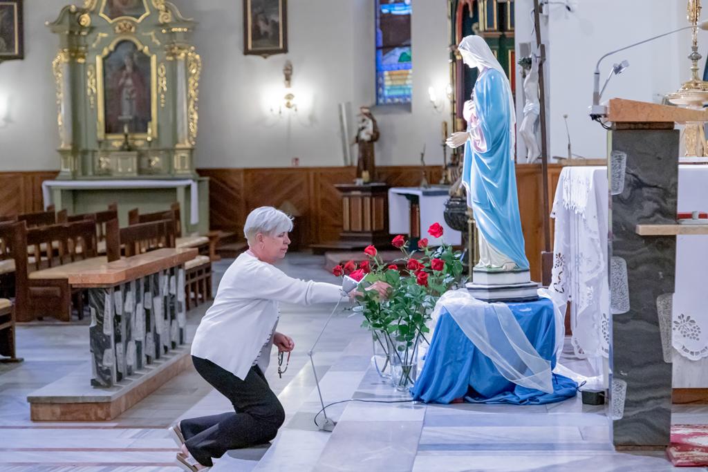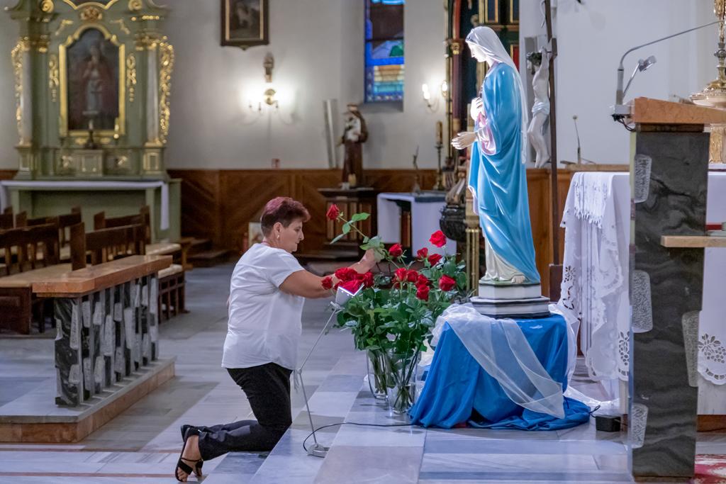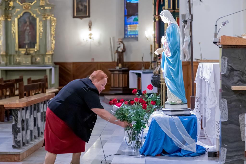 Środa 10 września br. minęła pod znakiem Maryi, a to wszystko za sprawą obecności pośród nas figury Niepokalanej. Wszystkie Msze św. tego dnia zostały odprawione wg formularza o Matce Bożej i to Jej poświęcony był wieczorny różaniec - prowadzony, jak co środę, przez Róże Różańcowe naszej parafii. Pięćdziesiąt czerwonych róż przed Jej figurą to okazanie naszej miłości i wdzięczności, bo tylko do Niej możemy uciekać się w każdej naszej potrzebie i nigdy nie doznamy zawodu.
