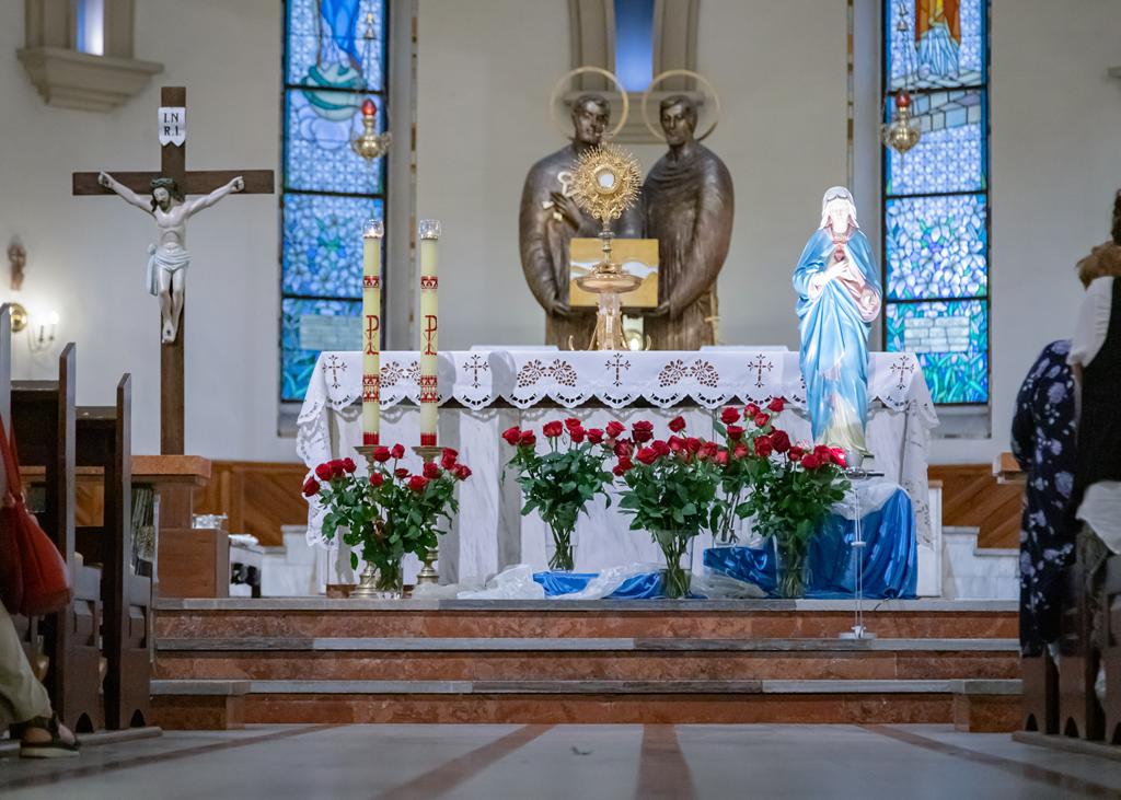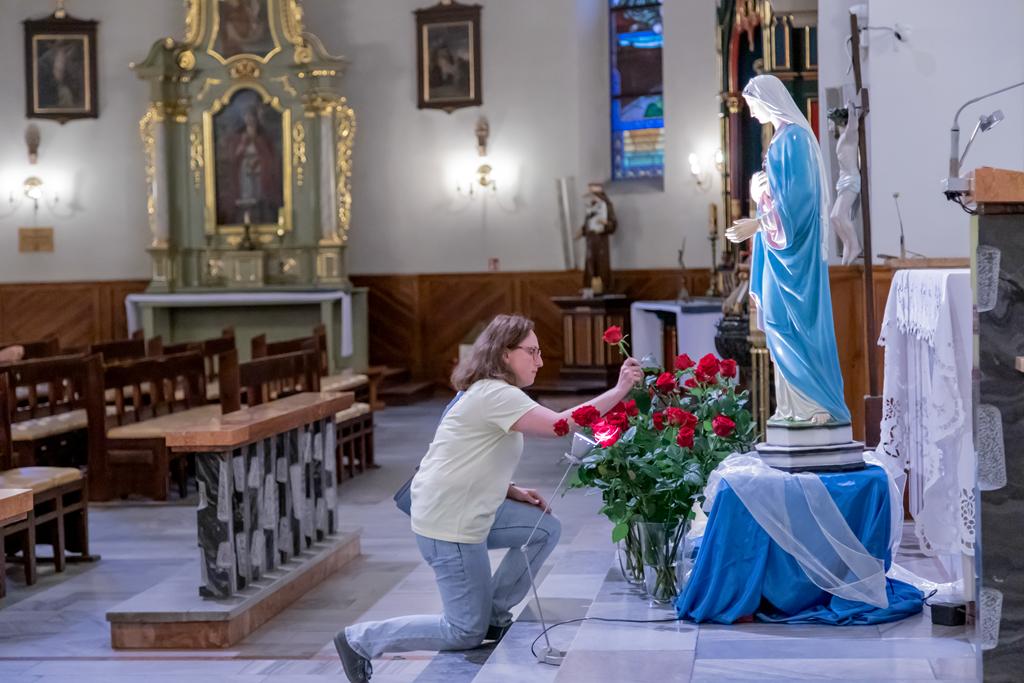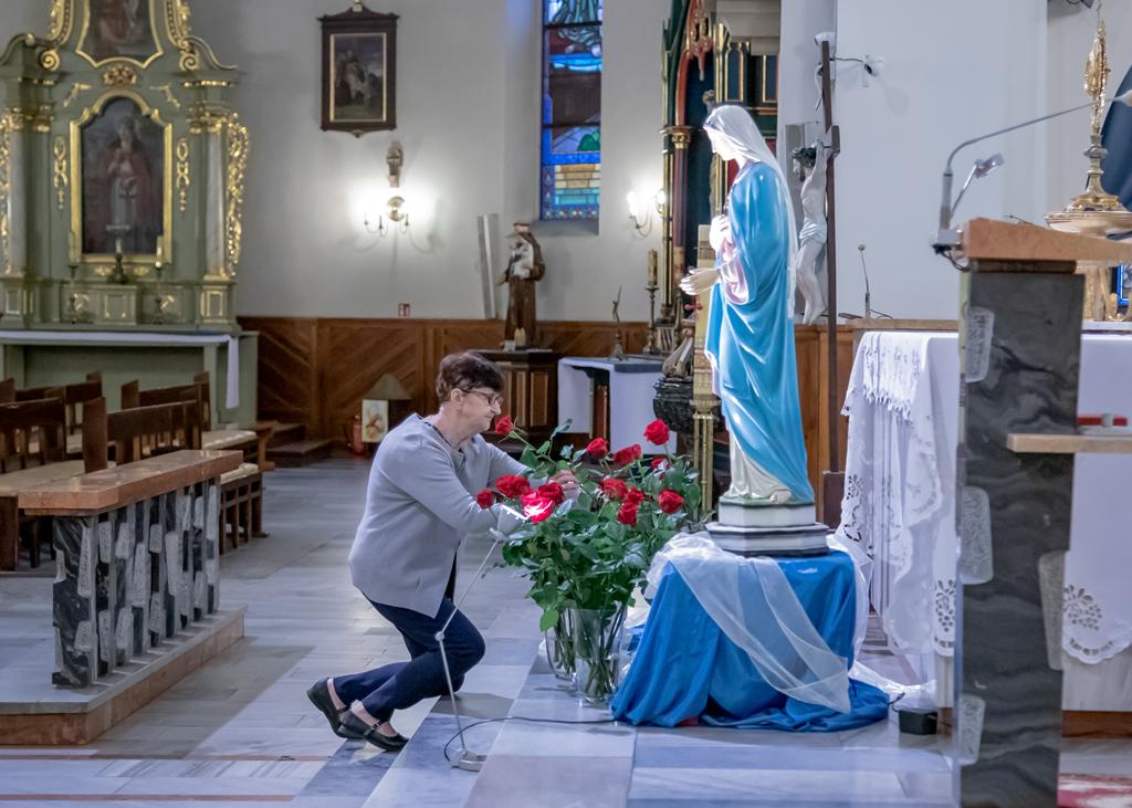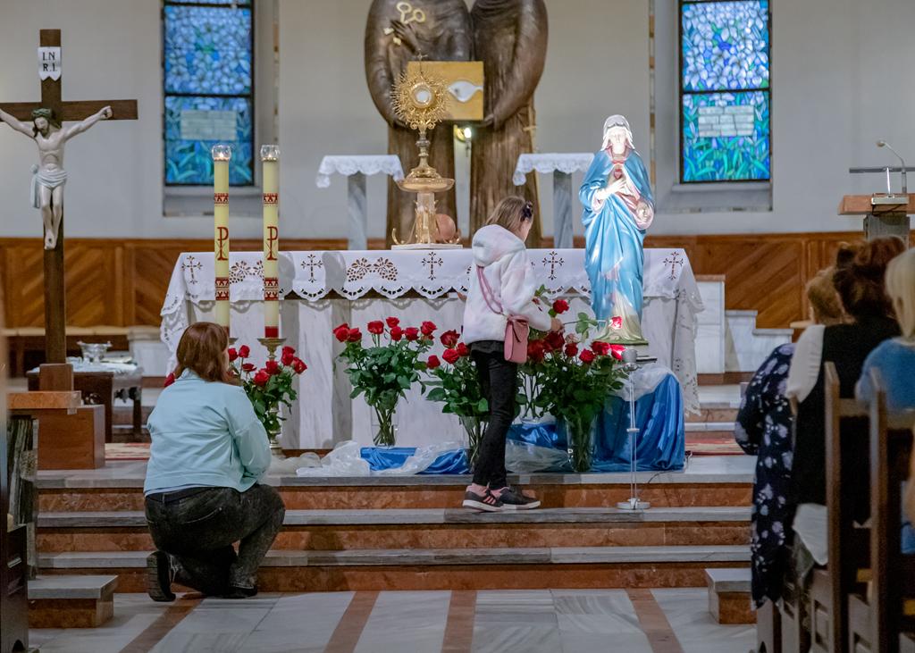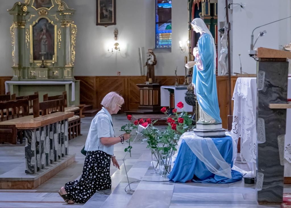 Środa 10 września br. minęła pod znakiem Maryi, a to wszystko za sprawą obecności pośród nas figury Niepokalanej. Wszystkie Msze św. tego dnia zostały odprawione wg formularza o Matce Bożej i to Jej poświęcony był wieczorny różaniec - prowadzony, jak co środę, przez Róże Różańcowe naszej parafii. Pięćdziesiąt czerwonych róż przed Jej figurą to okazanie naszej miłości i wdzięczności, bo tylko do Niej możemy uciekać się w każdej naszej potrzebie i nigdy nie doznamy zawodu.