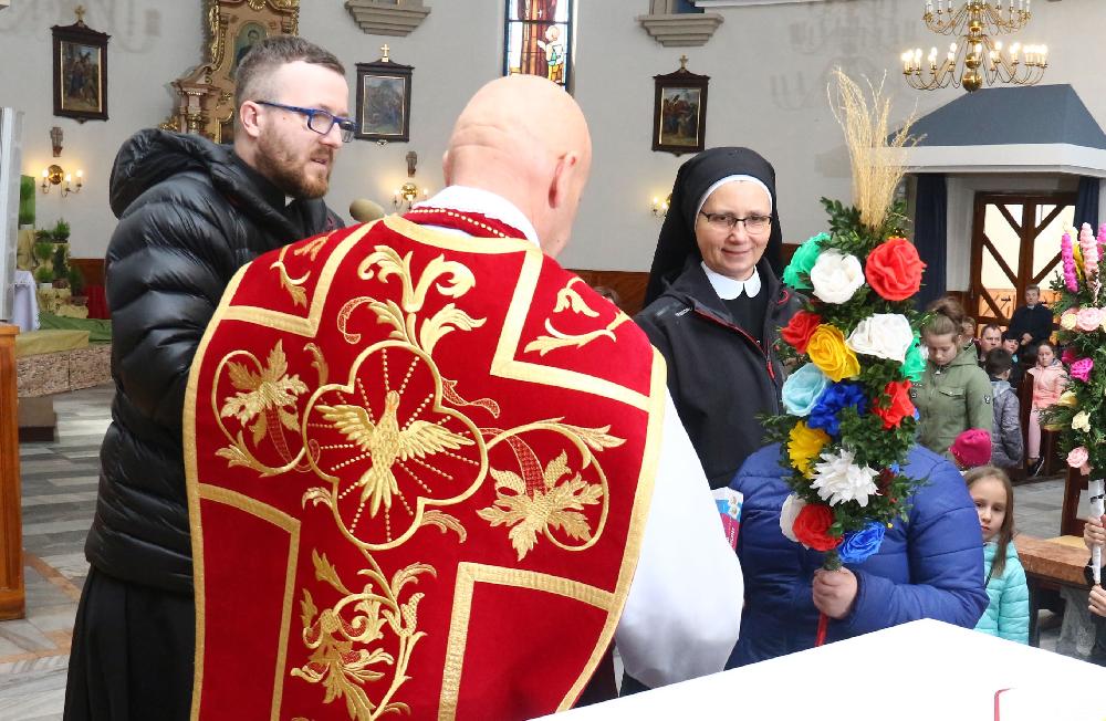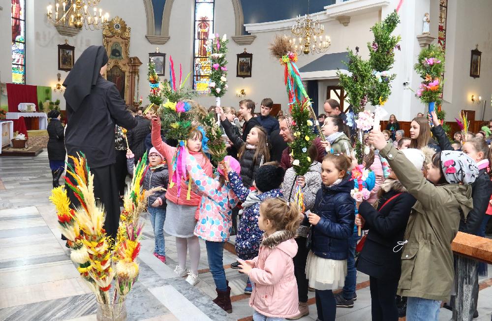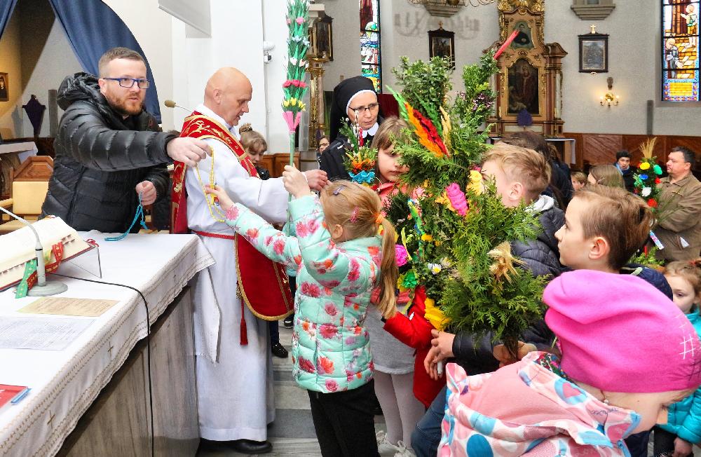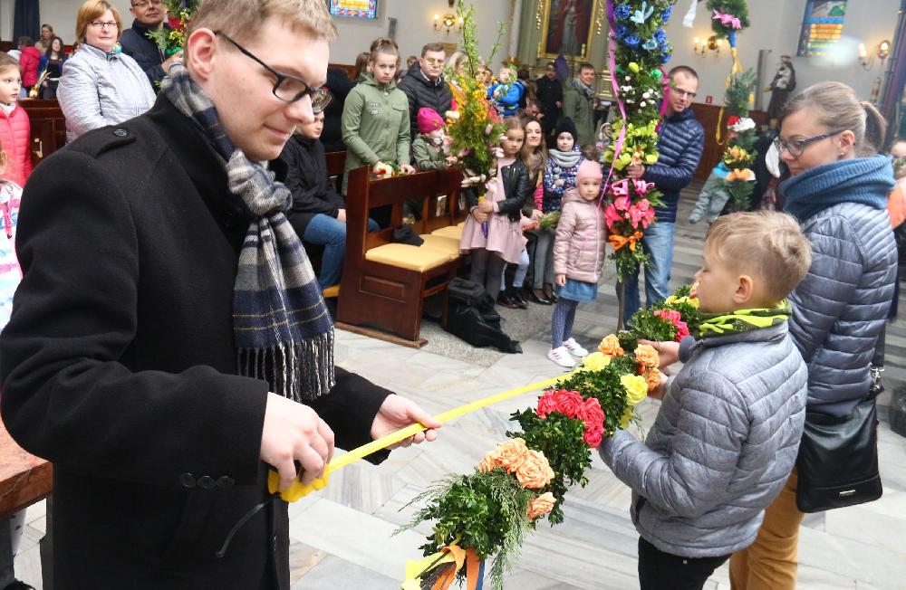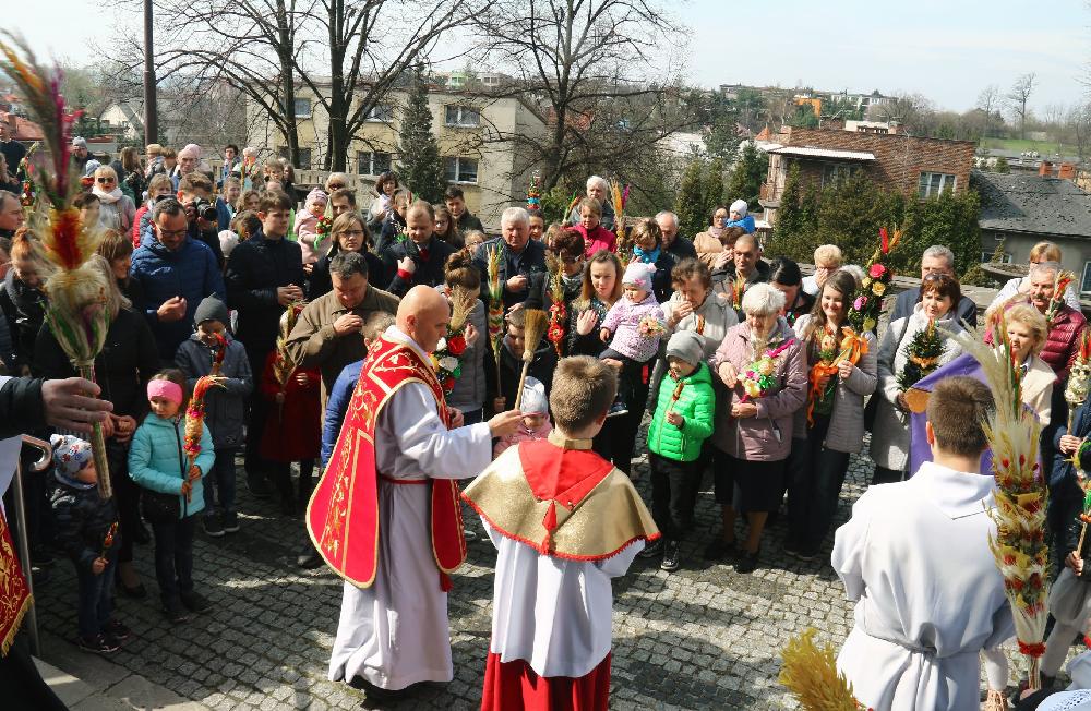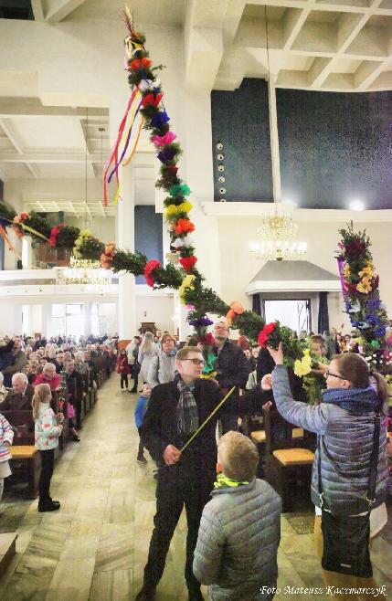 Szósta niedziela Wielkiego Postu nazywana jest Niedzielą Palmową, inaczej Niedzielą Męki Pańskiej. Rozpoczyna ona najważniejszy i najbardziej uroczysty okres w roku liturgicznym - Wielki Tydzień. Liturgia Kościoła wspomina uroczysty wjazd Pana Jezusa do Jerozolimy. Na pamiątkę tych wydarzeń poświecono tego dnia palmy oraz odbyła się uroczysta procesja. Po Mszy świętej o godz. 11:00 wybrano oraz nagrodzono najwyższe i własnoręcznie przygotowane palmy (rekord: 5,15 m wysokości). Warsztaty Terapii Zajęciowej, działające przy naszej parafii, prowadziły również tradycyjny kiermasz ozdób świątecznych.