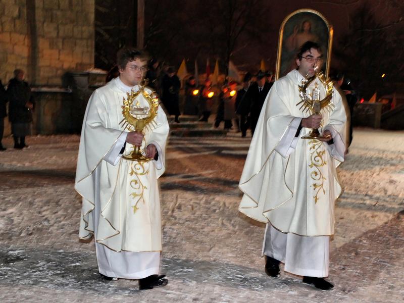 Nawiedzenie rozpoczęliśmy 2 XII w niedzielę o godz.17.00 uroczystą mszą św. z udziałem Ks. Kardynała S. Dziwisza. Noc na czuwaniu i modlitwie szybko minęła. W poniedziałkowe popołudnie równie uroczystą mszą św. pożegnaliśmy obraz oraz relikwie.