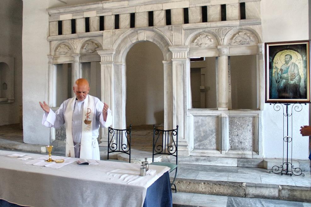 Dzień piaty to najdalej wysunięte miejsce na południe w naszej pielgrzymce. Tars-miejsce urodzenia św.Pawła. Temperatura wzrosła do 40 st.C. Widać wpływy arabskie: inni ludzie, inna kultura. Syrię mamy tylko 2 godz. drogi. Mszę św. w kościele, który jeszcze niedawno był muzeum a wcześniej magazynem wojskowym. Wraz z nami są chrześcijańscy uchodźcy z Syrii i Iraku, którzy biorą czynny udział w Mszy Św. Następnie studnia, z której ponoć dwa tysiące lat temu czerpał wodę św. Paweł. Obok znajdował się dom jego rodziców. Został jednak zniszczony.