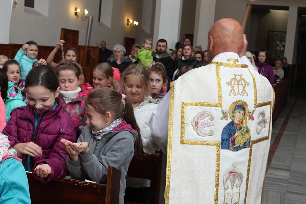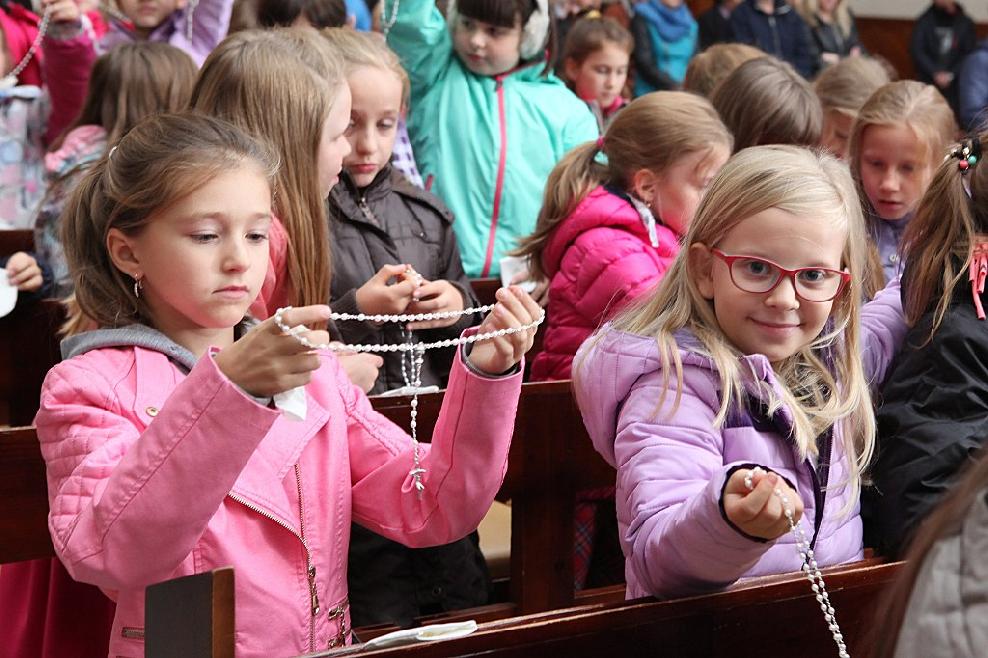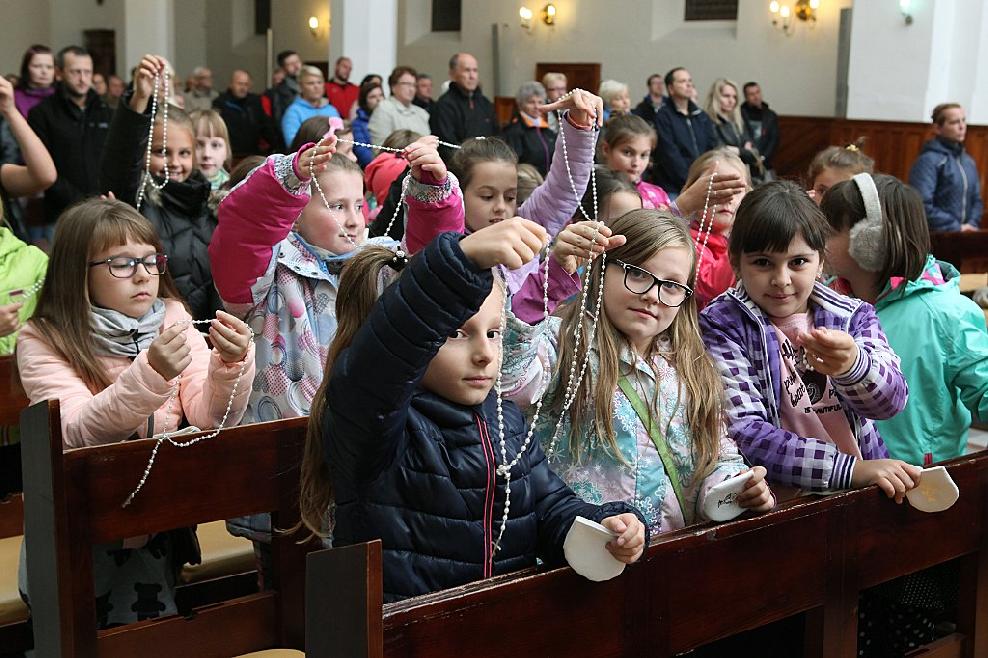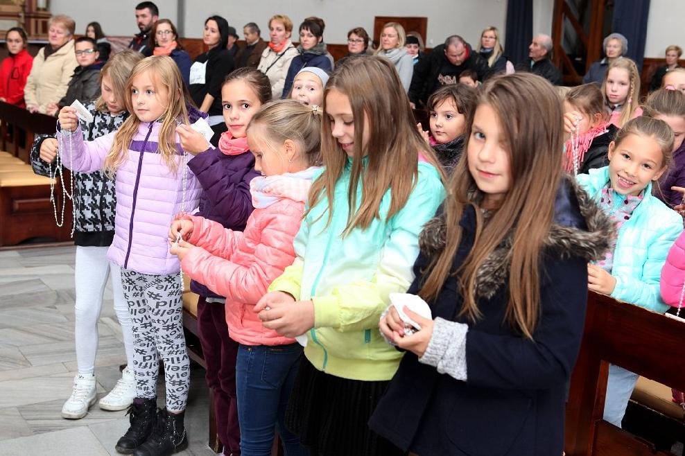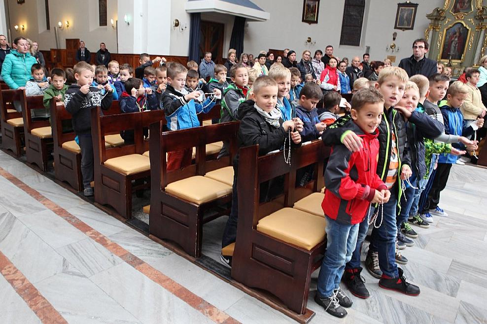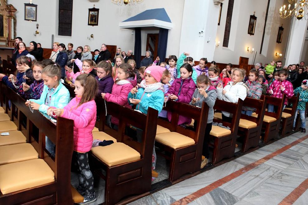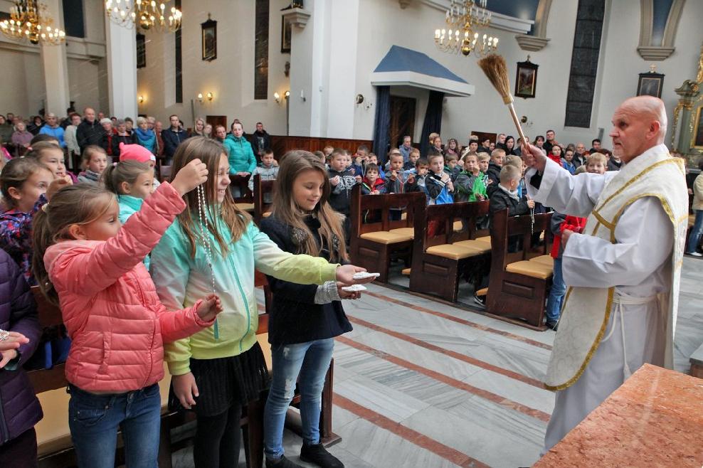 We wspomnienie Matki Bożej Różańcowej, w piątek 7 października 2016 roku, dzieciom z klas trzech szkoły podstawowej zostały poświęcone różańce. W ramach przygotowań do Pierwszej Komunii Świętej dzieci uczestniczą w coniedzielnych Mszach świętych, a poświęcone różańce przez ks. Proboszcza pozwolą im modlić się także podczas nabożeństw różańcowych.