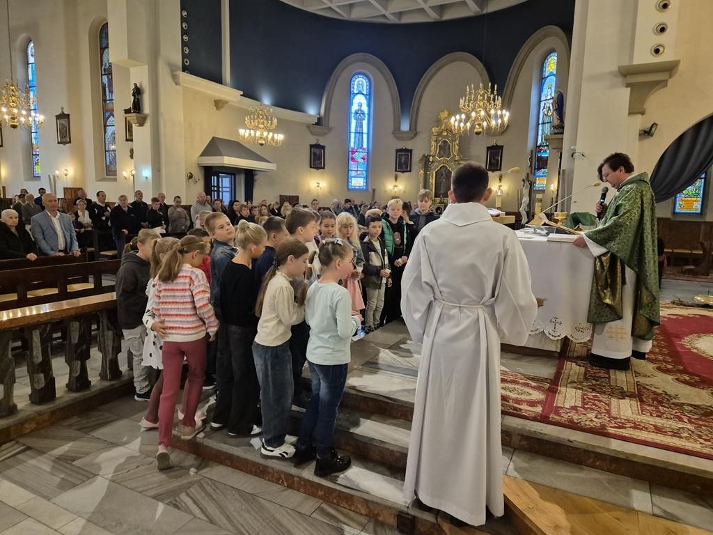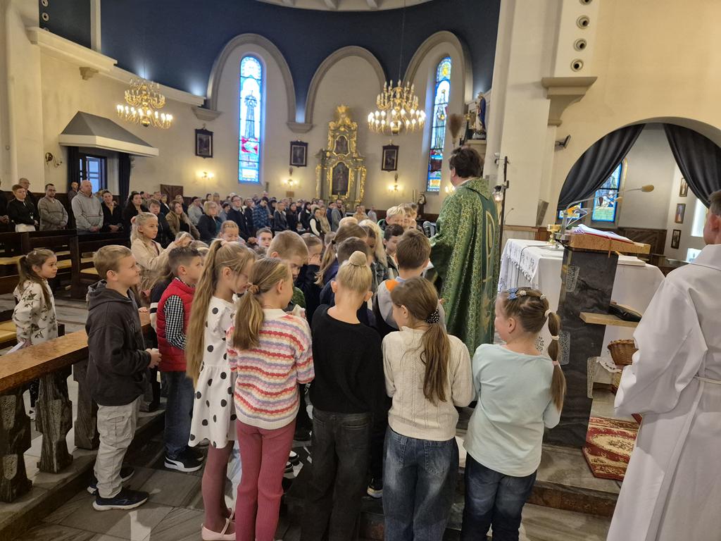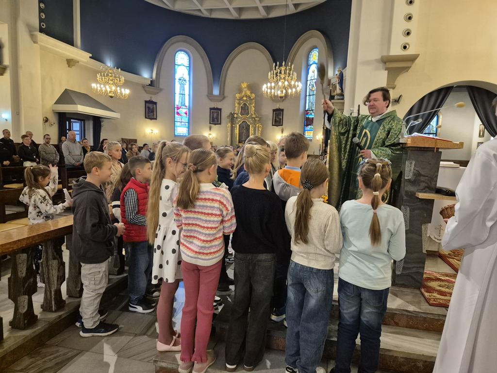 W niedzielę 28 września 2025 r., podczas Mszy św. o godz. 11:30, dzieciom z klas trzecich przygotowującym się do Pierwszej Komunii Świętej zostały poświęcone różańce.