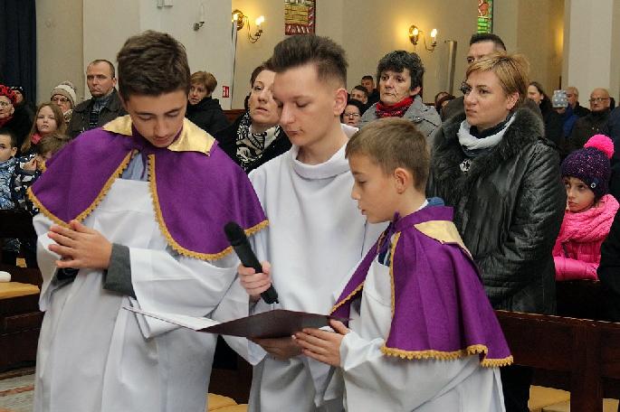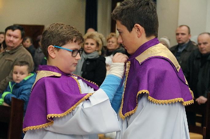 W niedzielę 17 grudnia 2017 roku dwóch kandydatów: Dawid Rowiński i Wiktor Rowiński zostali włączeni do grona Służby Liturgicznej i stali się ministrantami. Po kilku miesiącach przygotowania założyli stroje liturgiczne.
