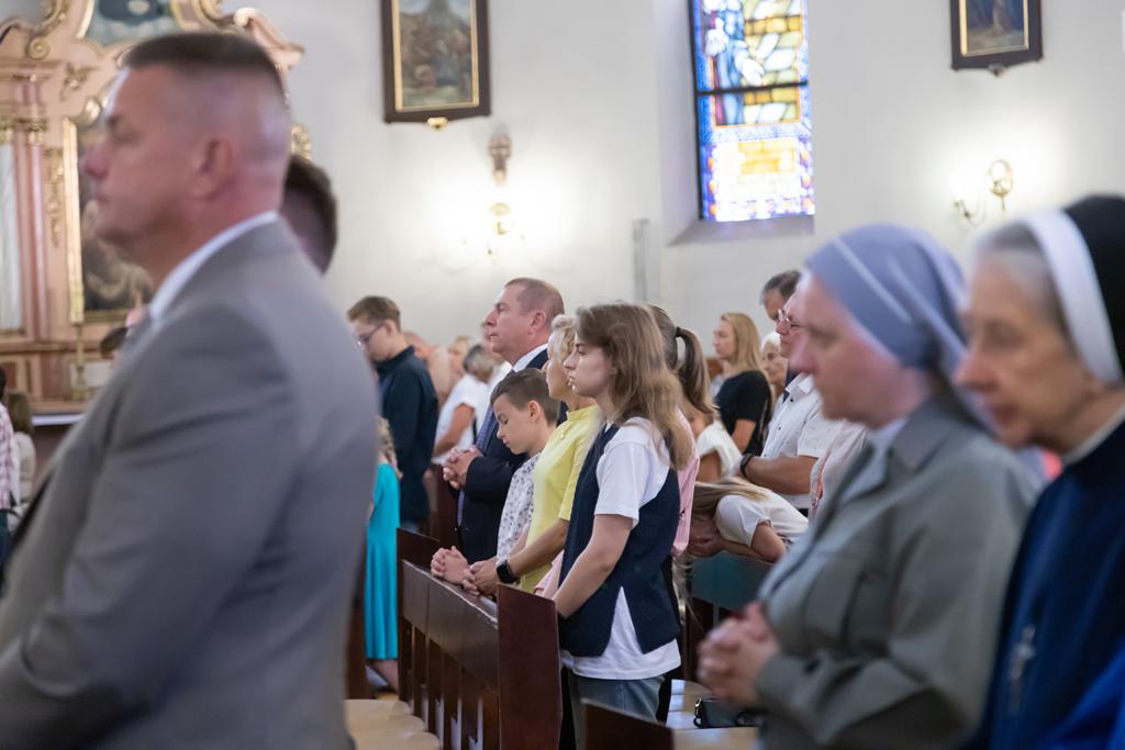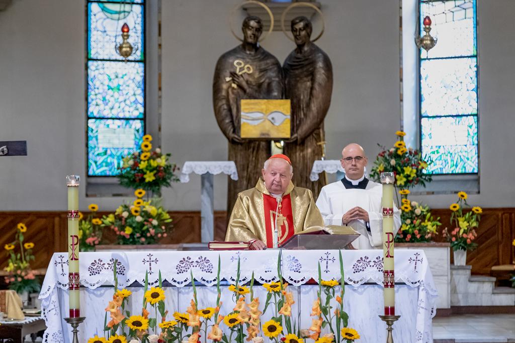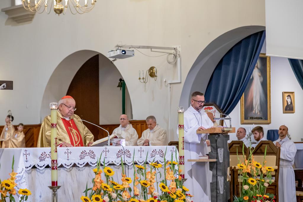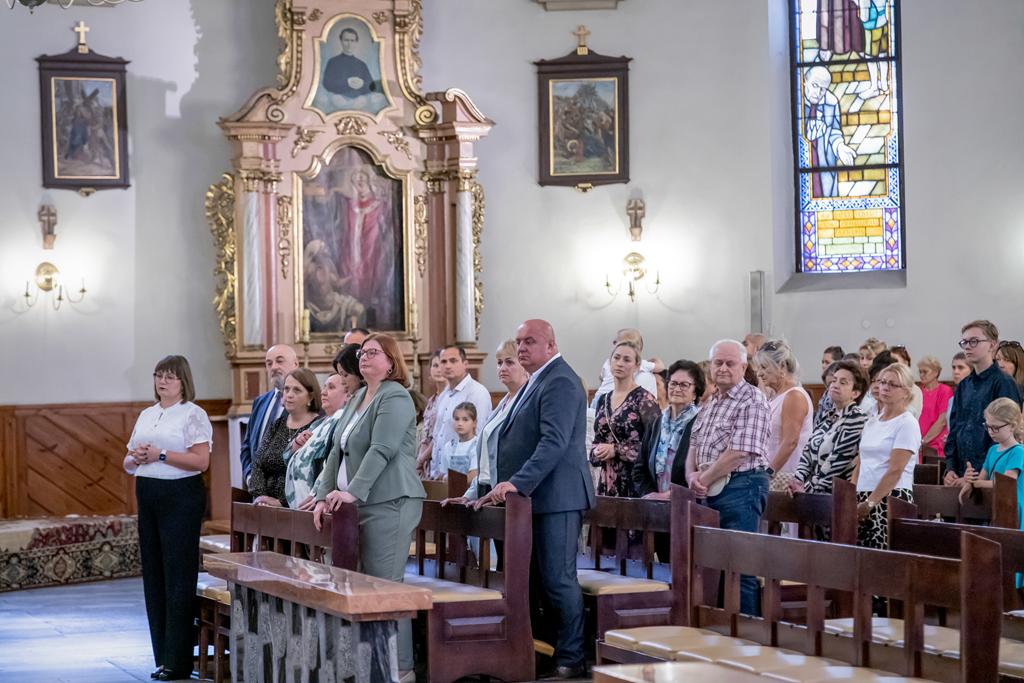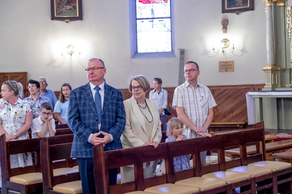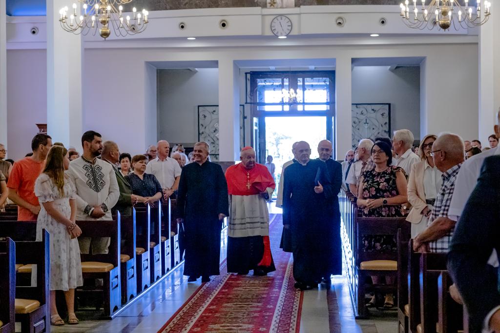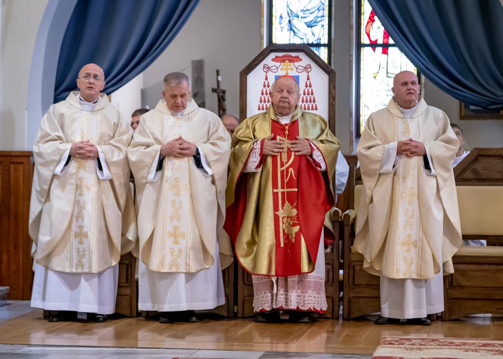 We wspólnej modlitwie wzięli udział przedstawiciele władz samorządowych, dyrektorzy szkół i przedszkoli, reprezentacja Straży Pożarnej, Siostry Zakonne pochodzące z naszej parafii, jak i te, które tutaj pracowały oraz Parafianie i Goście. W imieniu całej wspólnoty Rada Parafialna podziękowała ks. Kardynałowi za modlitwę w intencji naszej parafii. Na zakończenie liturgii ks. Kardynał poświęcił dwa nowe witraże, które powstały jako pamiątka Roku Jubileuszowego. Świąteczną liturgię ubogacił swoim śpiewem zespół muzyczny "Boski Squad".