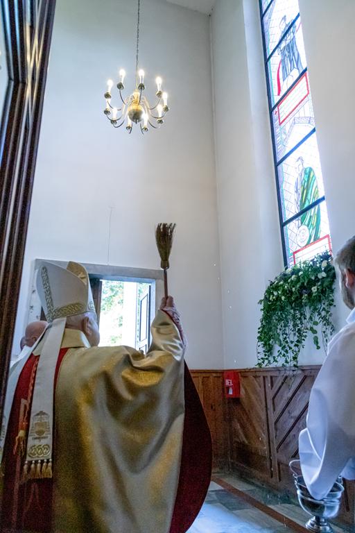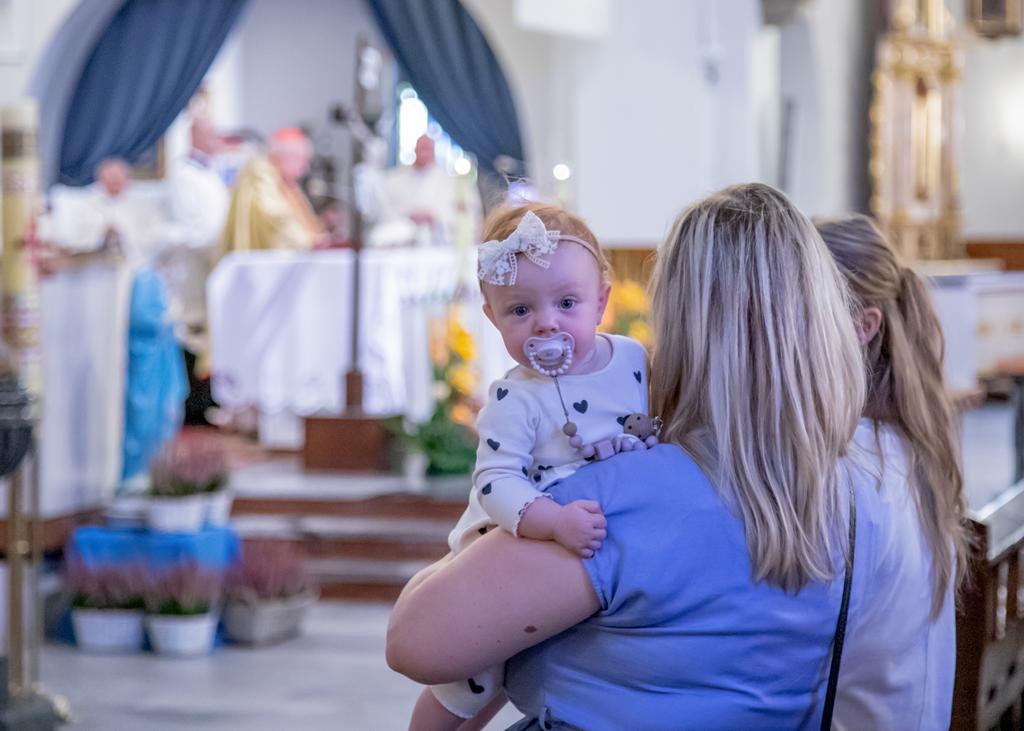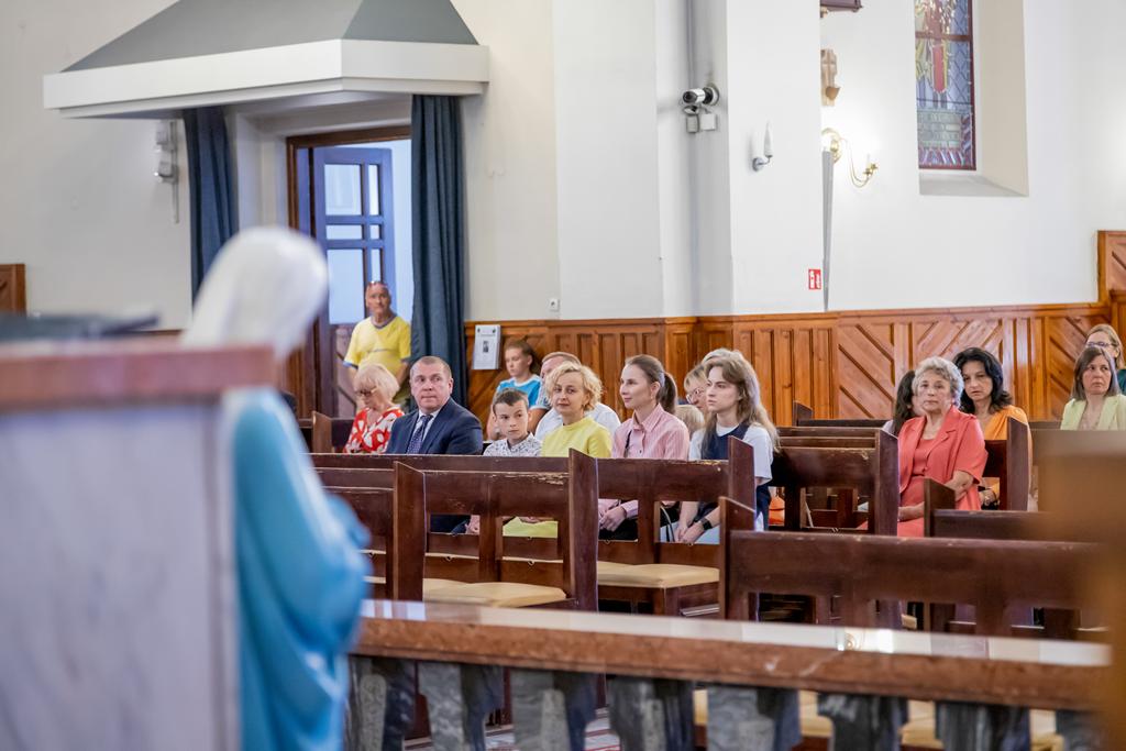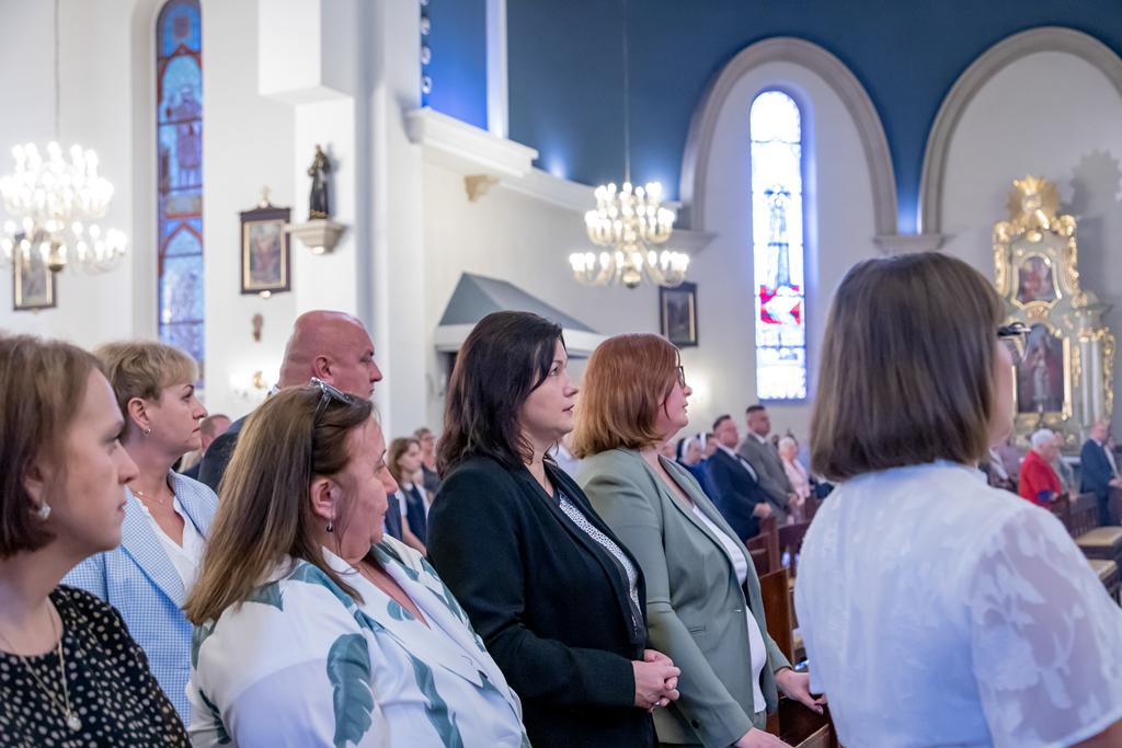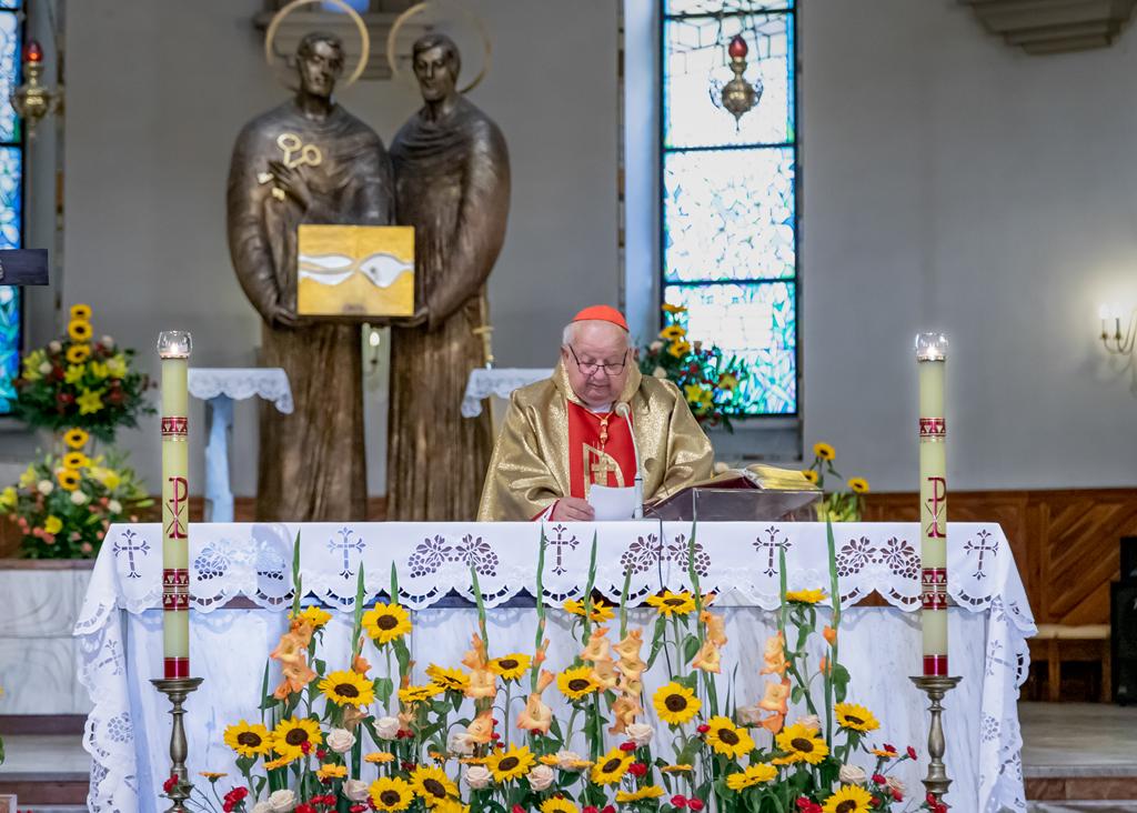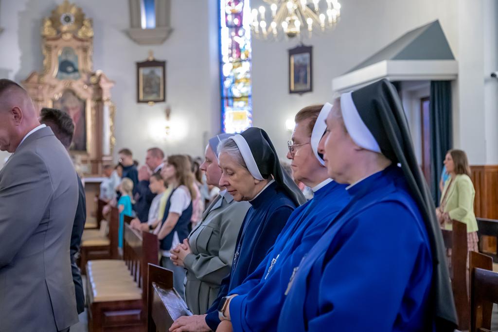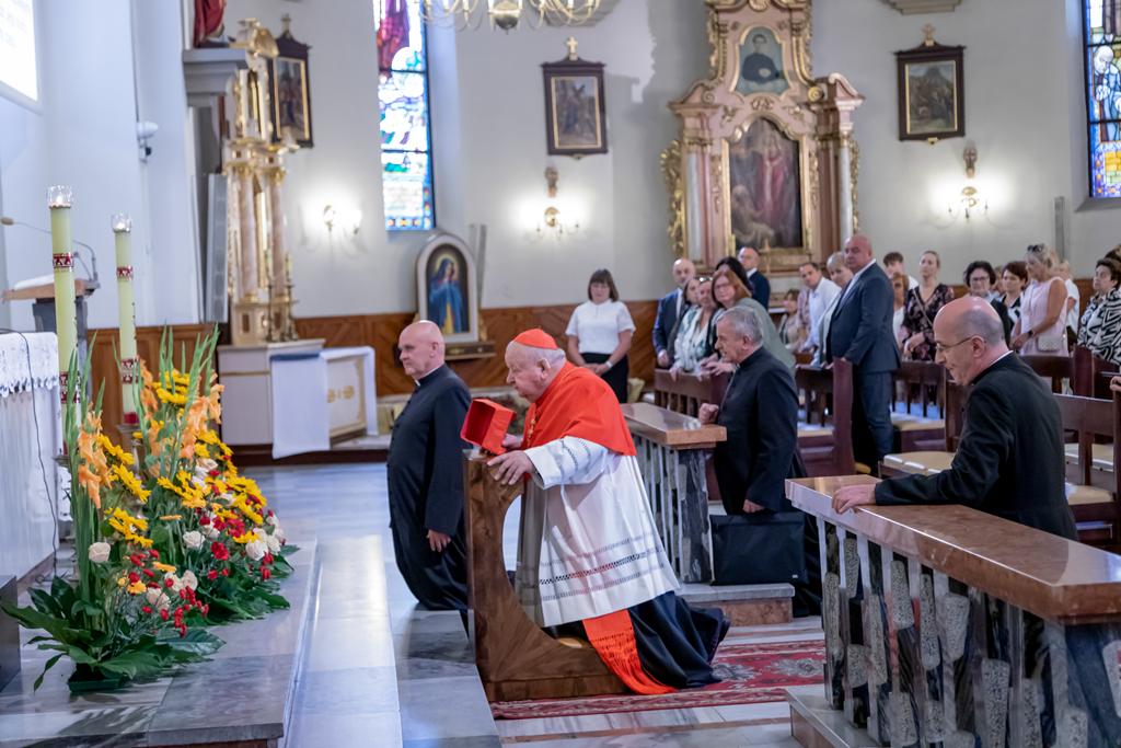 We wspólnej modlitwie wzięli udział przedstawiciele władz samorządowych, dyrektorzy szkół i przedszkoli, reprezentacja Straży Pożarnej, Siostry Zakonne pochodzące z naszej parafii, jak i te, które tutaj pracowały oraz Parafianie i Goście. W imieniu całej wspólnoty Rada Parafialna podziękowała ks. Kardynałowi za modlitwę w intencji naszej parafii. Na zakończenie liturgii ks. Kardynał poświęcił dwa nowe witraże, które powstały jako pamiątka Roku Jubileuszowego. Świąteczną liturgię ubogacił swoim śpiewem zespół muzyczny "Boski Squad".