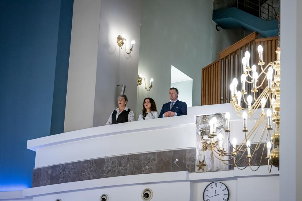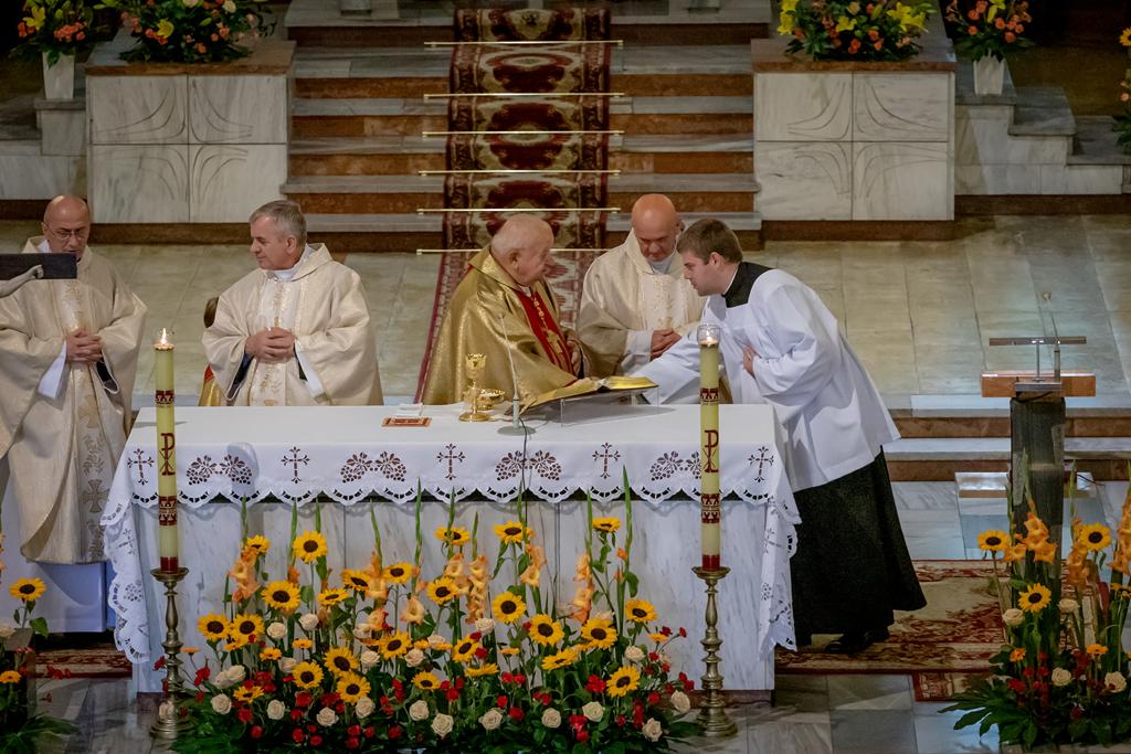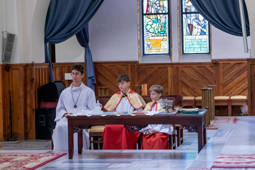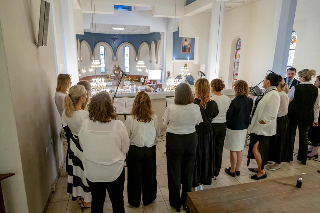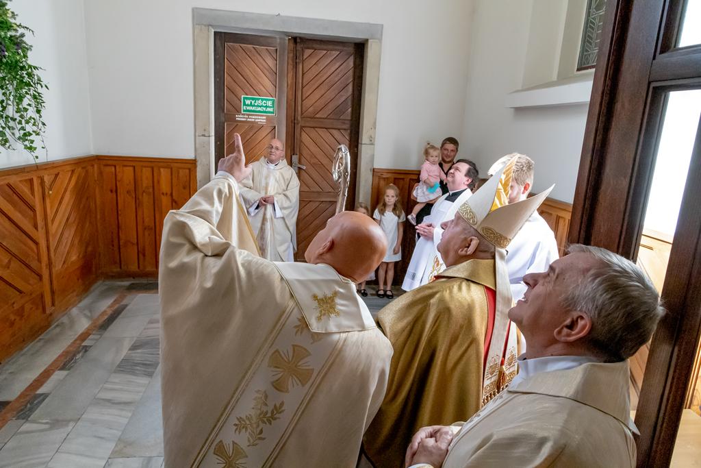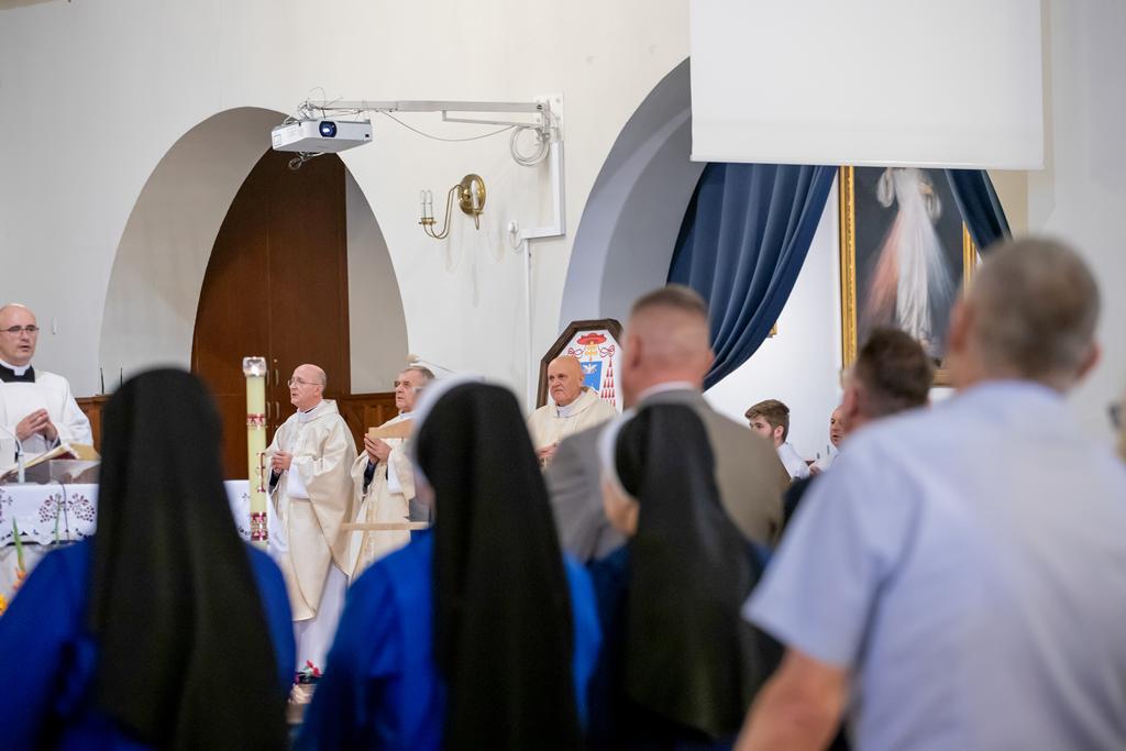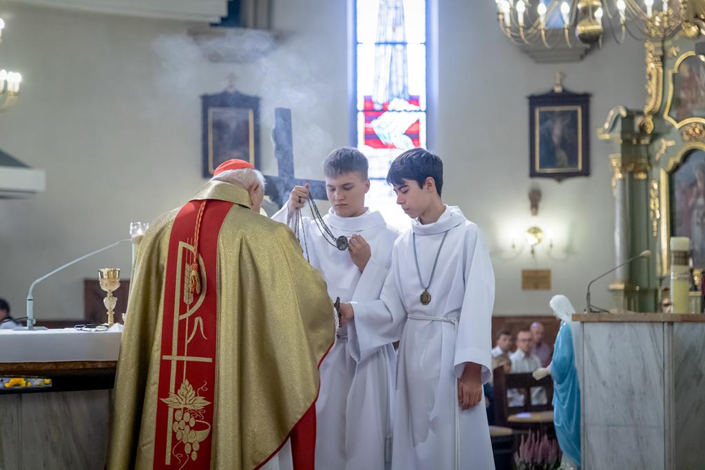 We wspólnej modlitwie wzięli udział przedstawiciele władz samorządowych, dyrektorzy szkół i przedszkoli, reprezentacja Straży Pożarnej, Siostry Zakonne pochodzące z naszej parafii, jak i te, które tutaj pracowały oraz Parafianie i Goście. W imieniu całej wspólnoty Rada Parafialna podziękowała ks. Kardynałowi za modlitwę w intencji naszej parafii. Na zakończenie liturgii ks. Kardynał poświęcił dwa nowe witraże, które powstały jako pamiątka Roku Jubileuszowego. Świąteczną liturgię ubogacił swoim śpiewem zespół muzyczny "Boski Squad".