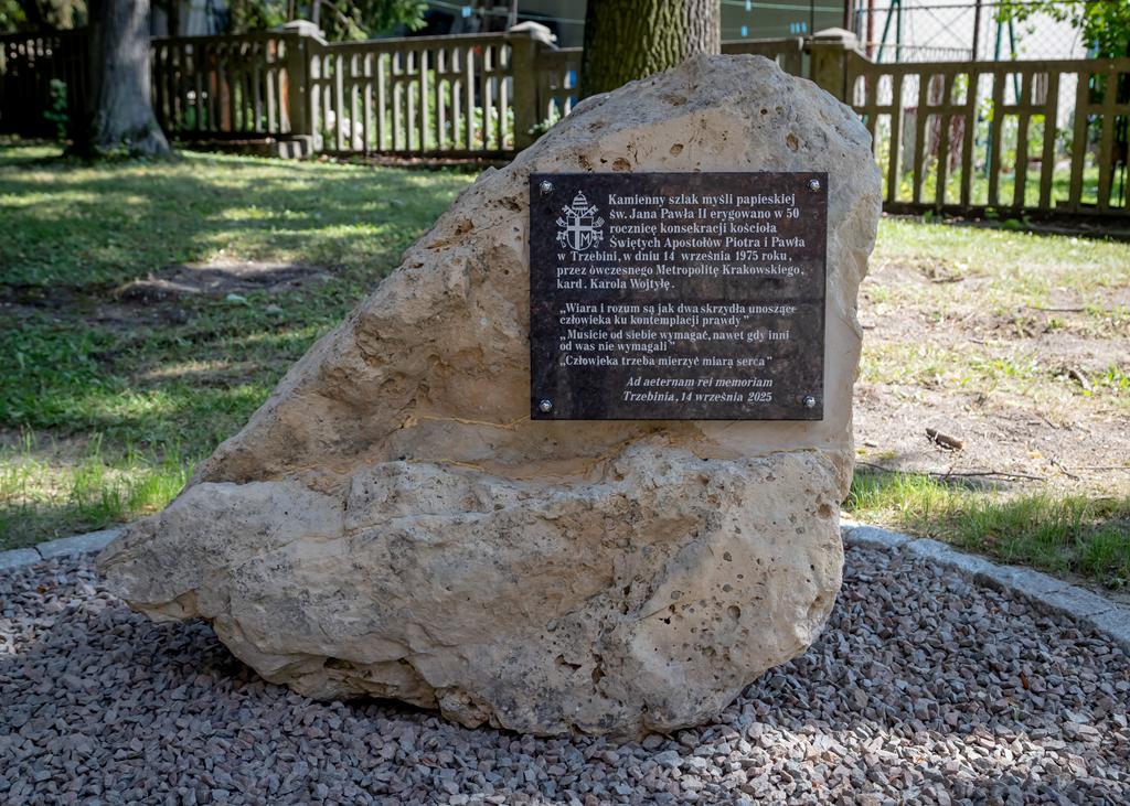 Kamienny Szlak Myśli Papieskich św. Jana Pawła II został wyznaczony w 50. rocznicę konsekracji naszej świątyni. Aktu poświęcenia świątyni przed 50 laty dokonał ówczesny Metropolita Krakowski kard. Karol Wojtyła.