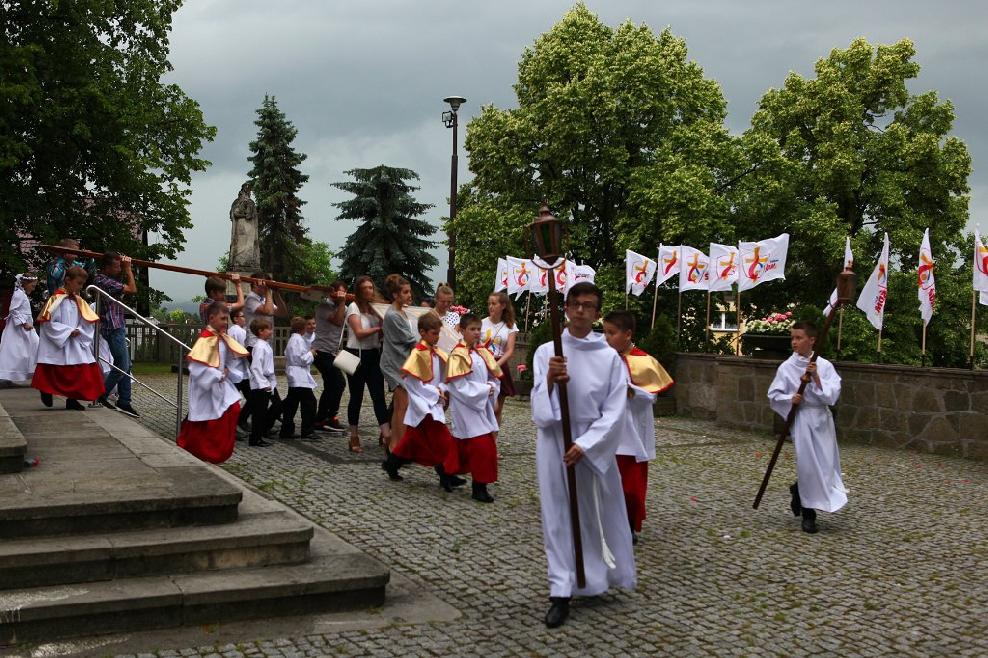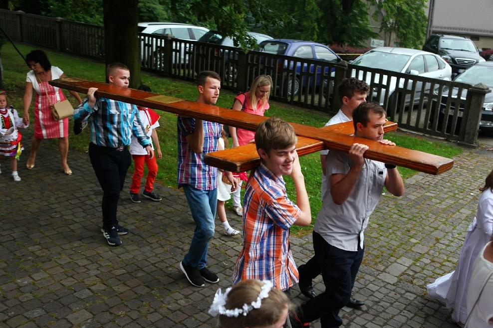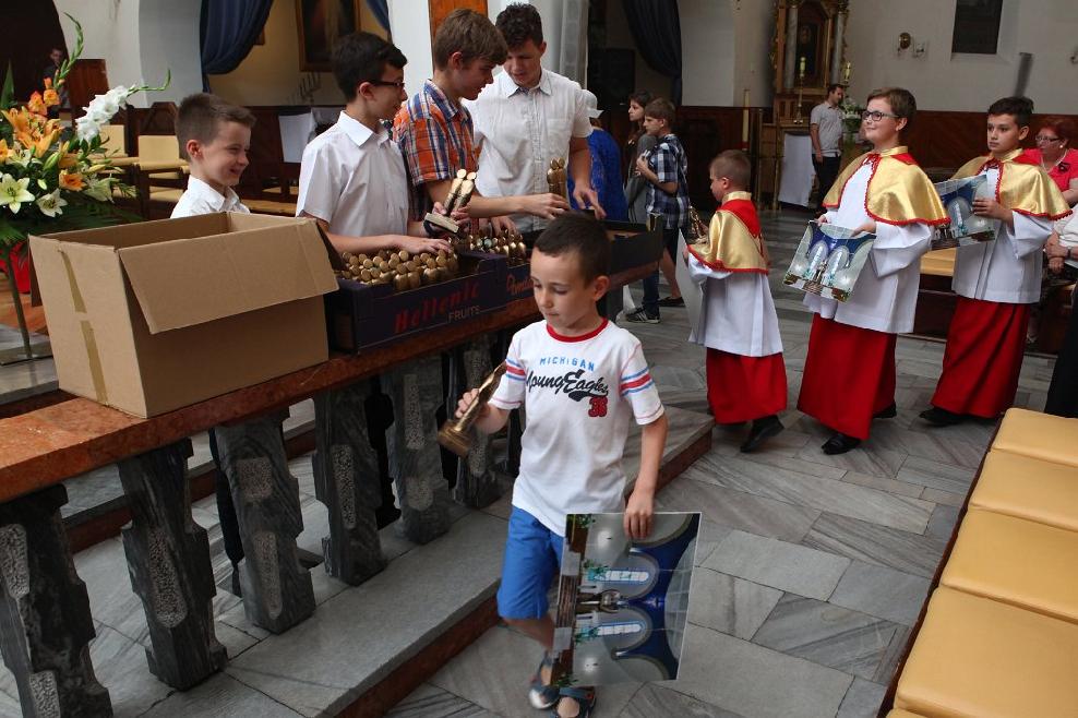 W niedzielę 26 czerwca 2016 roku przeżywaliśmy odpust parafialny ku czci św. Apostołów Piotra i Pawła. Uroczystej sumie odpustowej połączonej z procesją wokół kościoła przewodniczył ks. Grzegorz Pieróg, który w Wielkim Poście był naszym kaznodzieją rekolekcyjnym. W procesji eucharystycznej niesione były również przez młodzież symbole Światowych Dni Młodzieży. Po Mszy świętej nagrodzono dzieci, które sumiennie przez cały rok szkolny uczęszczały na niedzielną Eucharystię. Popołudniem odbyło się tradycyjne już spotkanie w plebańskim ogrodzie, na którym nie zabrakło "Bigosu Proboszcza", ciast oraz chleba ze smalcem, za który dziękujemy Wszystkim ofiarodawcom.