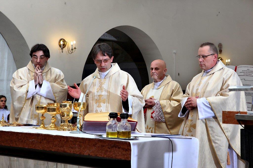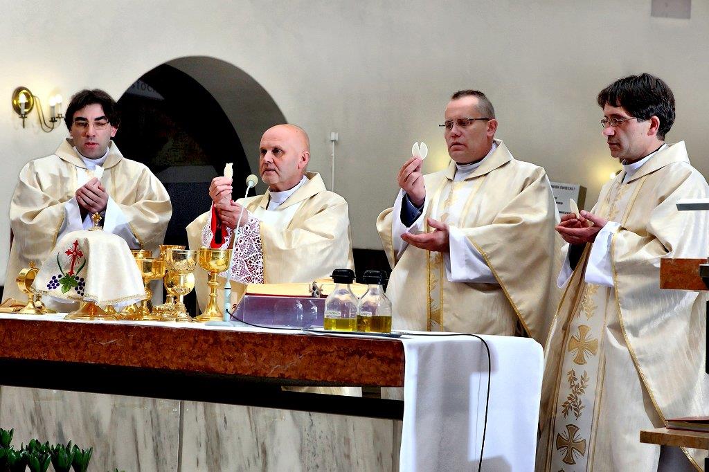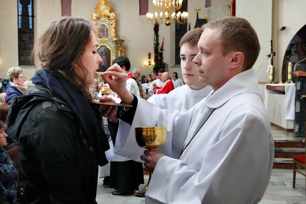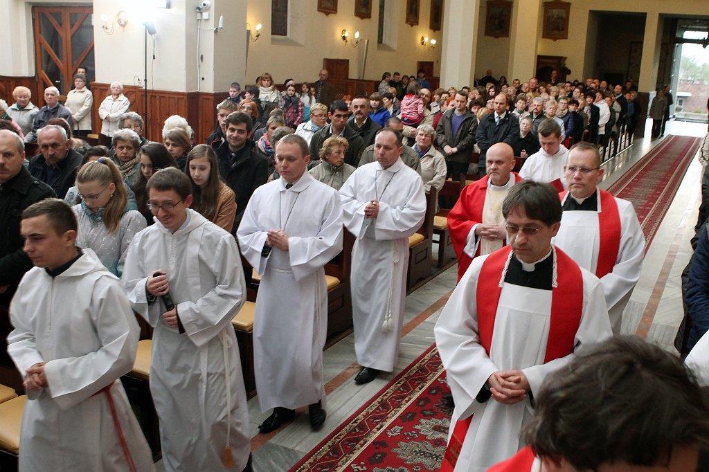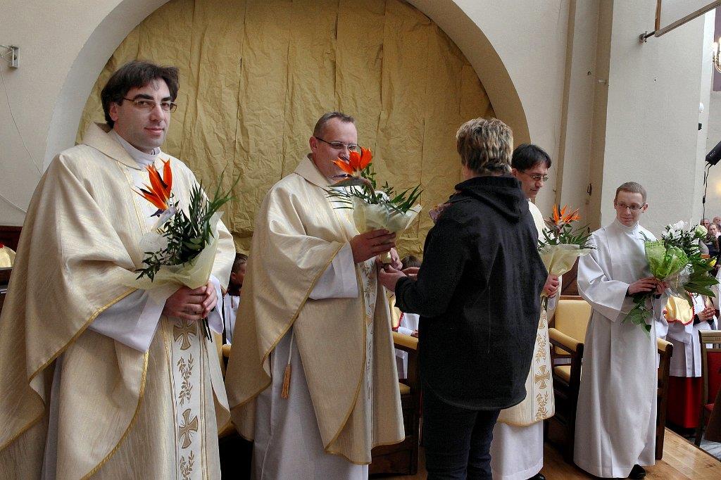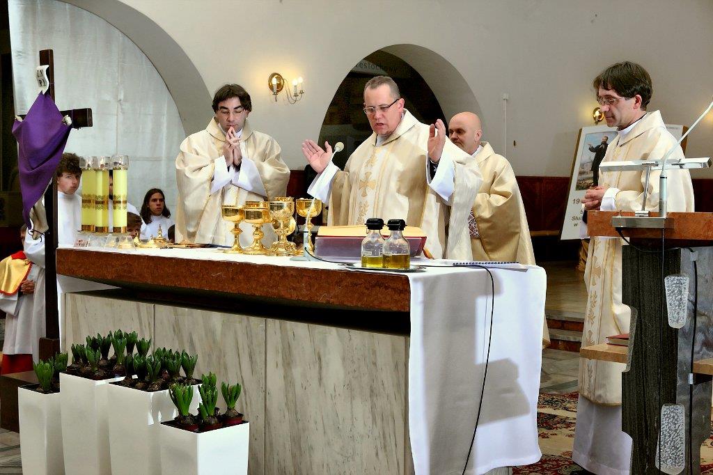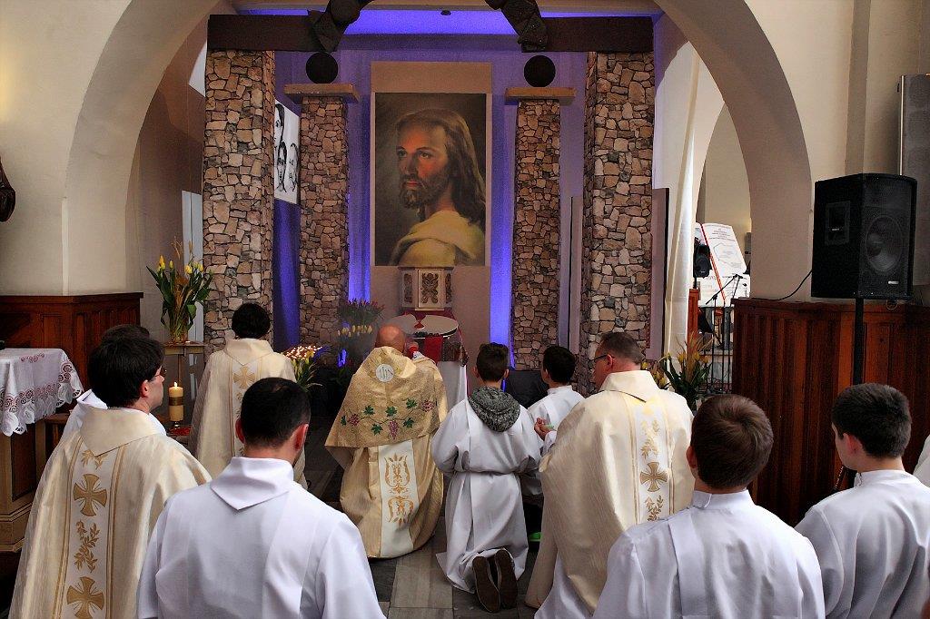 Wielki Czwartek to pamiątka ustanowienia Eucharystii i Kapłaństwa, stąd też tego dnia składaliśmy Kapłanom życzenia. Po Mszy św. przeniesiono Najświętszy Sakrament do tzw. "Ciemnicy", czyli kaplicy upamiętniającej pojmanie Jezusa.
