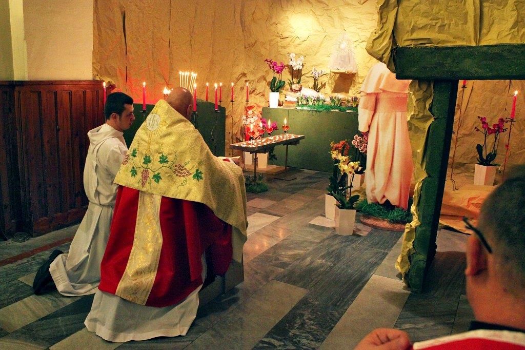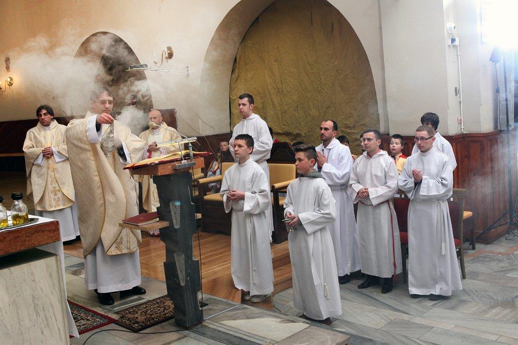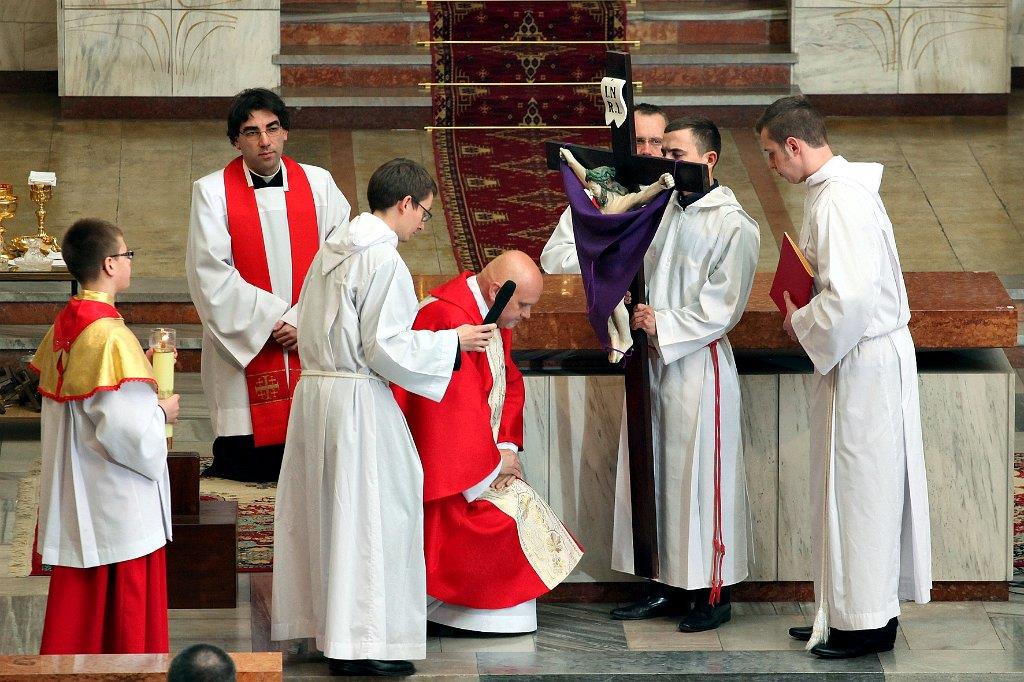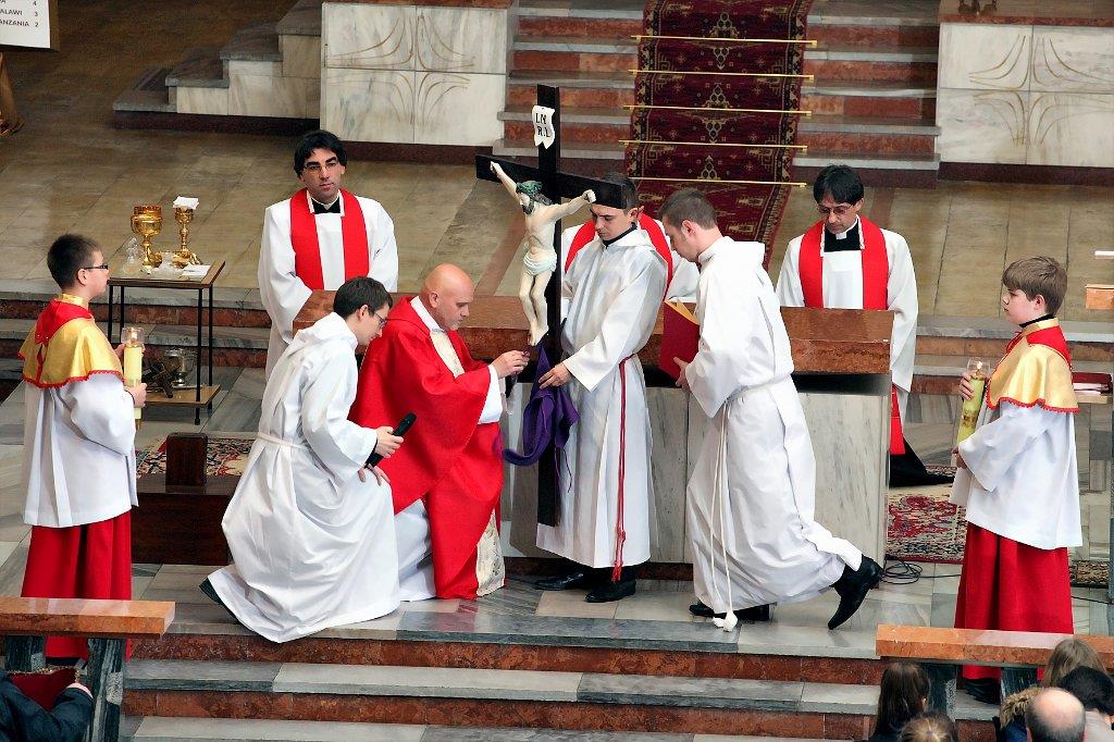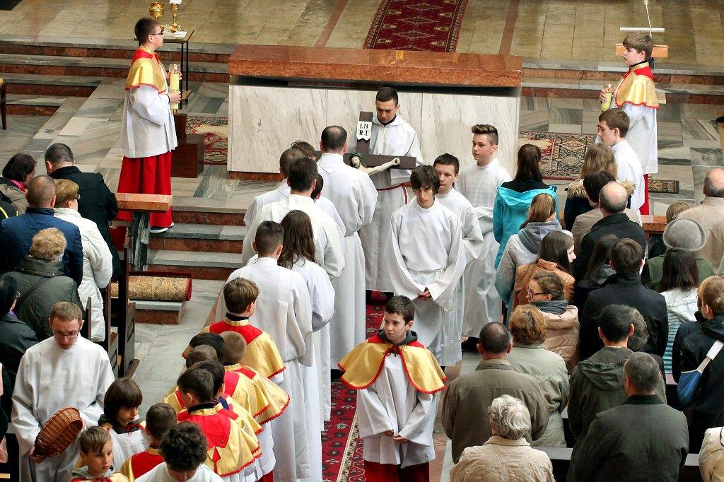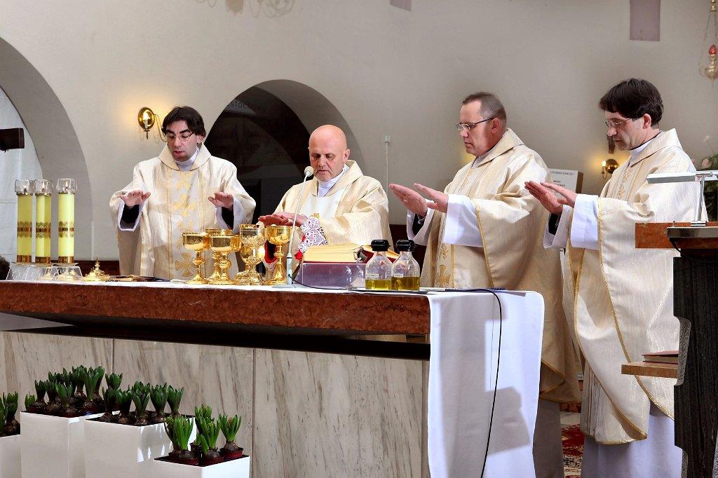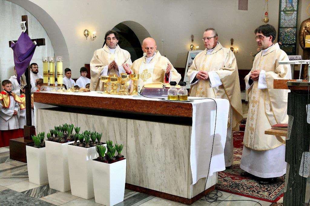 Wielki Czwartek to pamiątka ustanowienia Eucharystii i Kapłaństwa, stąd też tego dnia składaliśmy Kapłanom życzenia. Po Mszy św. przeniesiono Najświętszy Sakrament do tzw. "Ciemnicy", czyli kaplicy upamiętniającej pojmanie Jezusa.